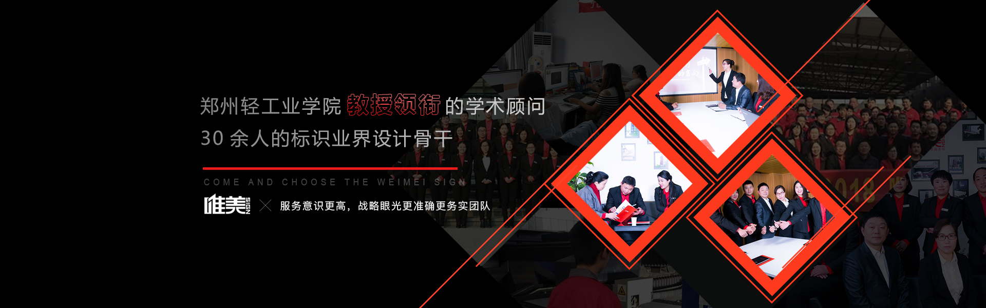 鄭州唯美標(biāo)識設(shè)計制作公司擁有21000平方現(xiàn)代化生產(chǎn)車間、多臺先進(jìn)設(shè)備、100多名技工團(tuán)隊、12位資深設(shè)計師團(tuán)隊,嚴(yán)遵19道制作工序和6S管理體系,成功服務(wù)2800多個標(biāo)識項目,3...
